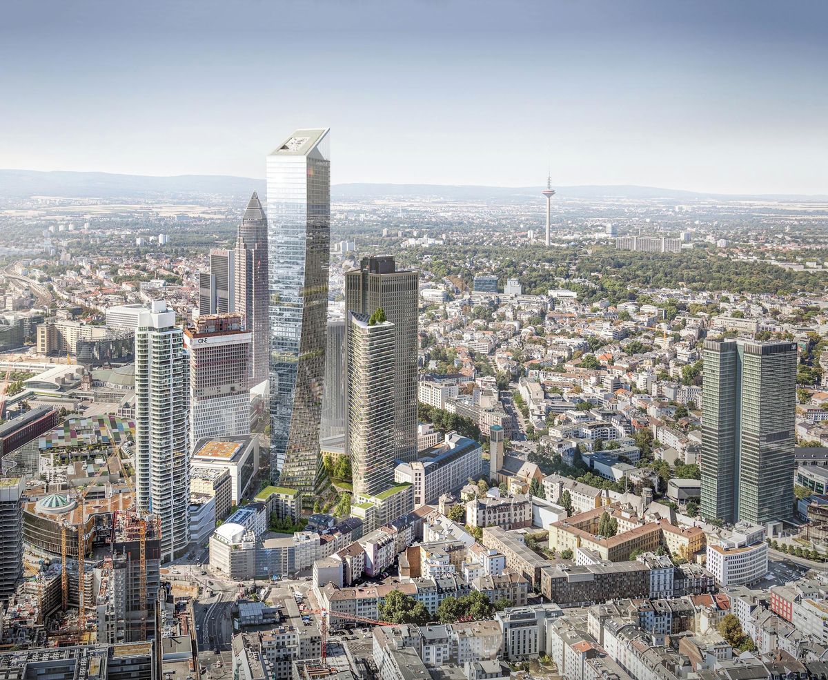 Plánovaný zhruba dvousetmetrový mrakodrap ve frankfurtské bankovní čtvrti má vypadat jako obrácená tužka. Stavebníci – investiční fond Commerz Real a developer Tishman Speyer – chtějí budovu o užitné ploše kanceláří zhruba 60 tisíc metrů čtverečních dokončit pokud možno už do roku 2031. Mrakodrap by byl dokonce o něco vyšší než nová věž Evropské centrální banky ve frankfurtské čtvrti Ostend.
