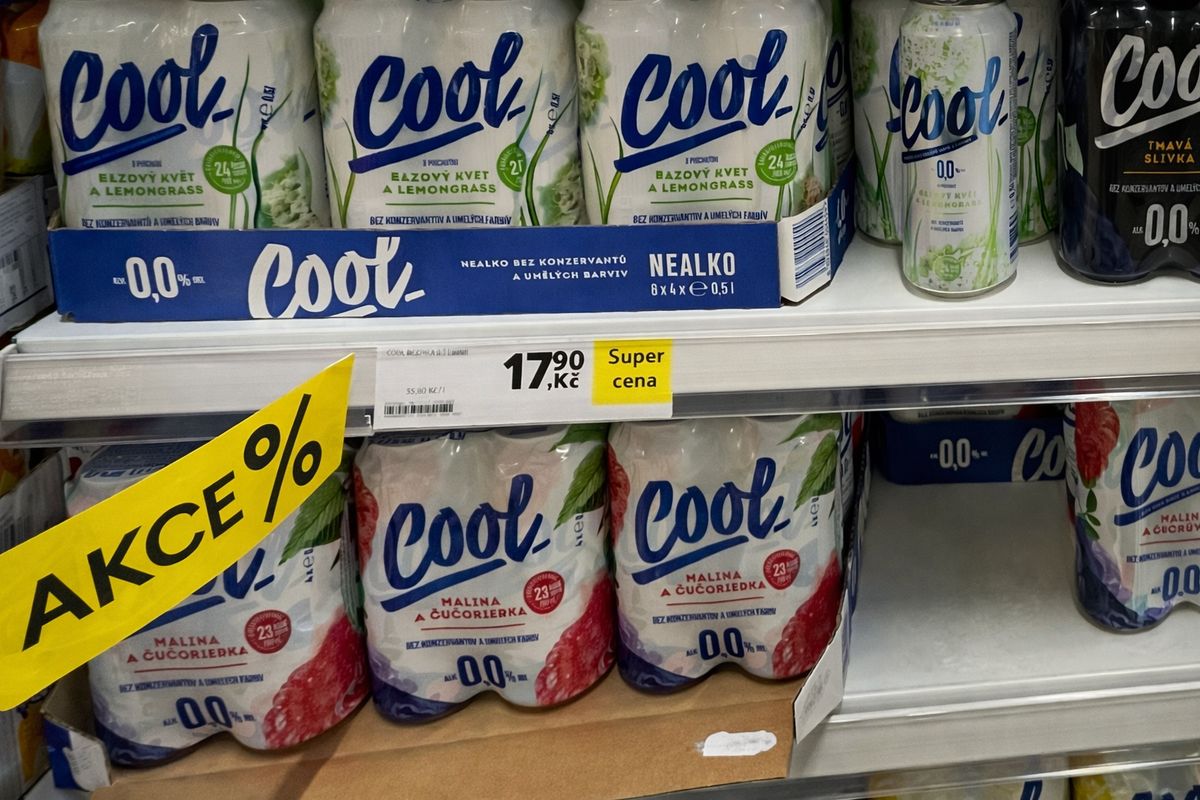 Co je na snímku? AI má jasno: „Sleva na nápoje Cool v supermarketu.“ Snímek z prodejny Tesco v OC Smíchov 8. 2. 2026.