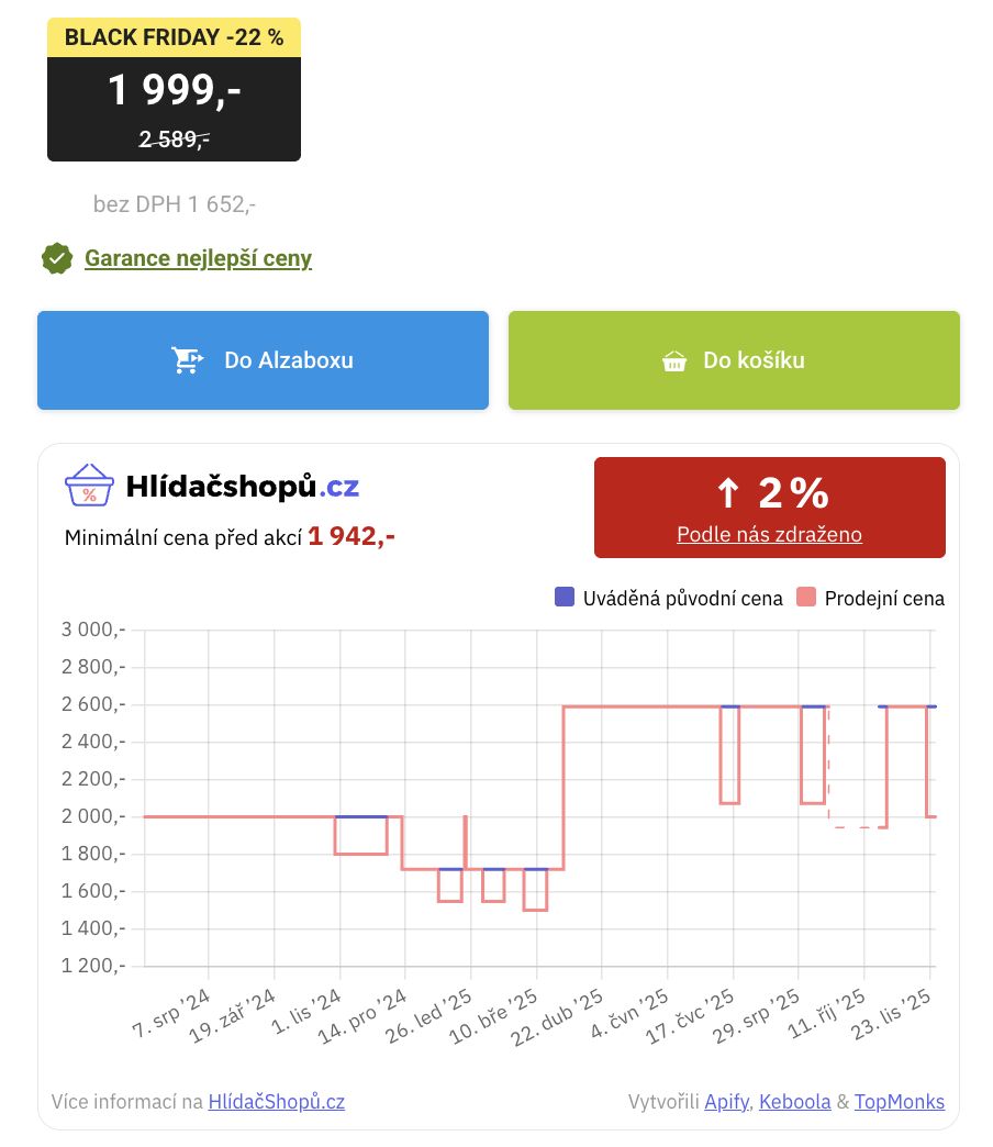 Lídr internetového trhu Alza.cz zařadil do Black Friday kolem 50 tisíc produktů. U 17 tisíc z nich společnost Apify hlásí neshody s cenou.