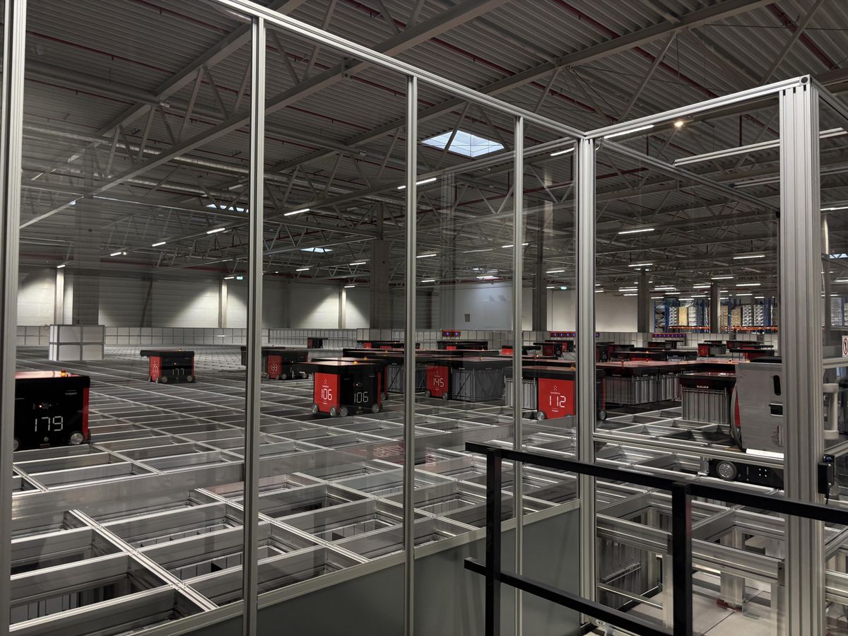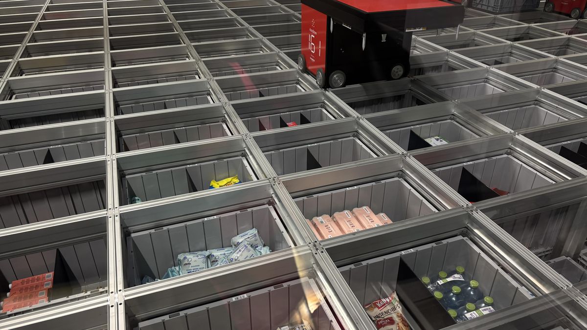 Umělá inteligence tady řídí prakticky vše. Automatizovaný je příjem zboží i příprava objednávek pomocí AutoStore gridu, kde malí hranatí roboti jezdí a hledají jednotlivé krabice se zbožím. Ty jsou umístěny v komíncích podle toho, která položka se objednává nejčastěji. Pokud tedy zákazník chce něco, po čem je poptávka menší, musí robot krabice přeskládat. Není na to ale sám – pomohou mu ostatní roboti, kterých po „gridu“ jezdí asi 80.