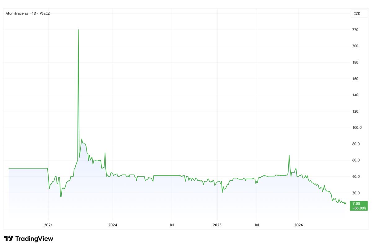 Akcie AtomTrace vstoupily na burzu Start v roce 2019 při upisovací ceně 50 korun. Před pozastavením obchodování se jejich cena propadla zhruba na sedm korun, tedy asi o 86 procent.