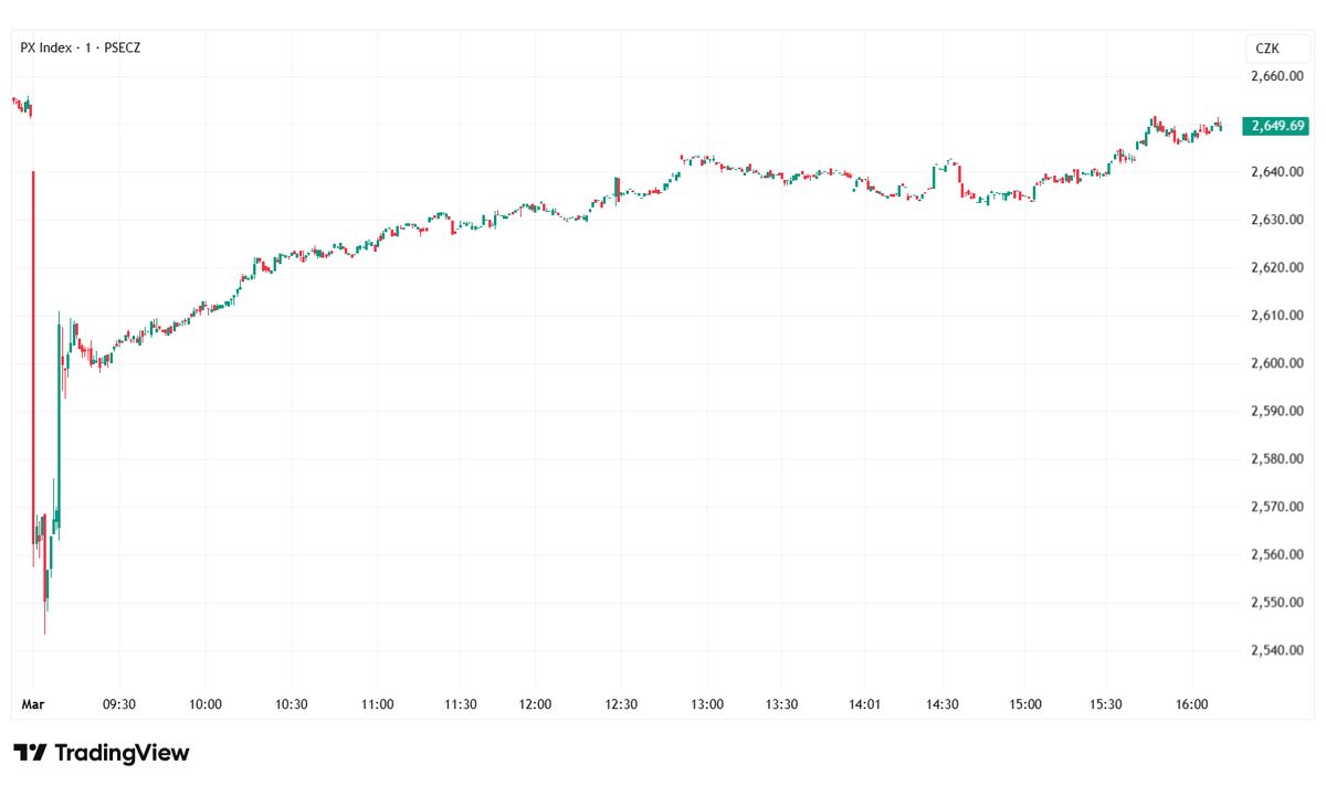 Pražská burza během dne zaznamenala výrazné výkyvy. Její index PX krátce ztrácel až kolem čtyř procent, ale později část ztrát smazal a obchodování nakonec uzavřel téměř beze změny, jen s mírným poklesem, dodali analytici.