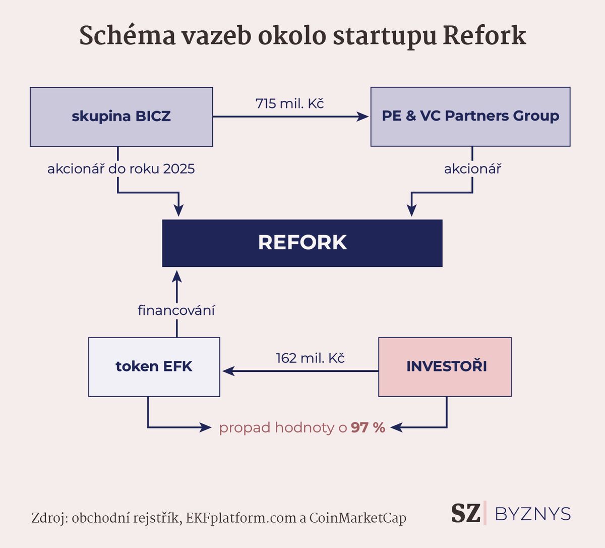 Kromě půjček od BICZ získával Refork kapitál rovněž prostřednictvím tokenů nabízených veřejnosti. Hodnota kryptoměny nazvané EFK je ale dlouhodobě téměř nulová. Na redakci Seznam Zpráv se opakovaně obracejí držitelé tokenů s tím, že s nimi firma nekomunikuje. Představitelé Reforku nereagovali ani na opakované žádosti redakce o vyjádření k insolvenčnímu návrhu.