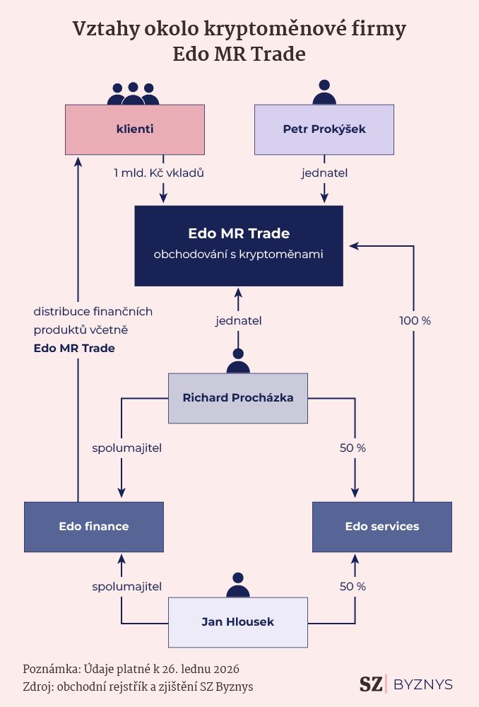 Dosavadní vazby okolo kryptoměnové firmy Edo MR Trade.