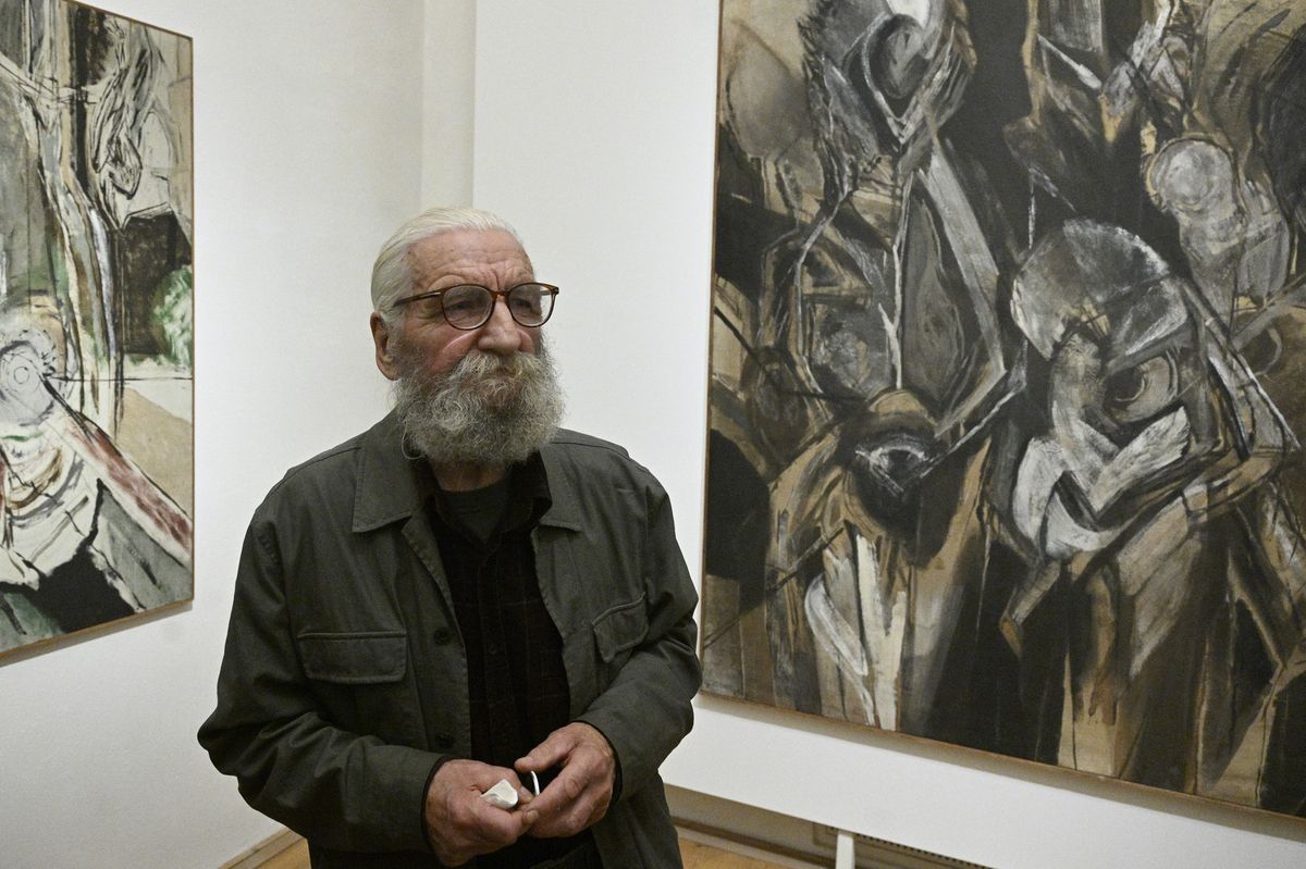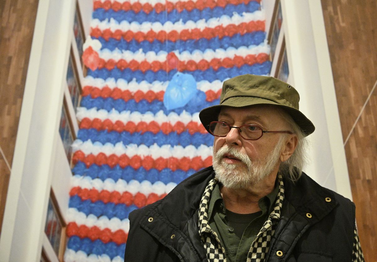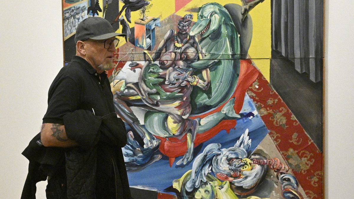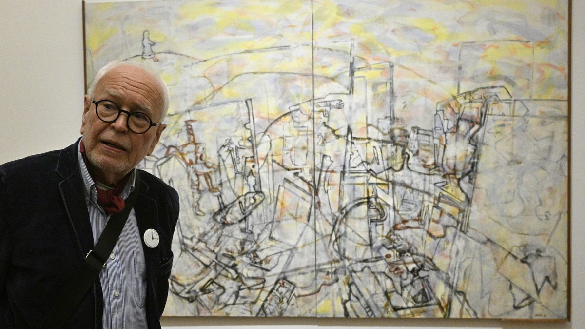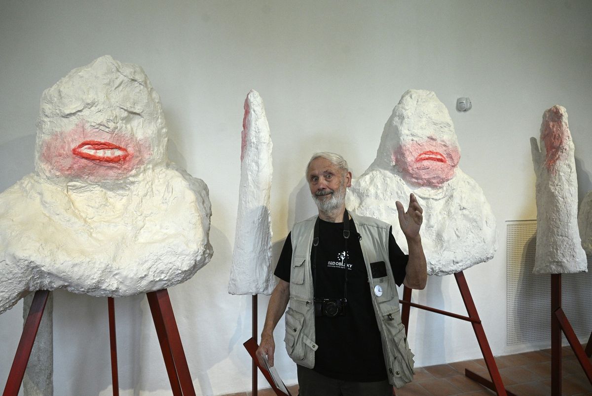 Kurt Gebauer se svým dílem na výstavě v GASK.