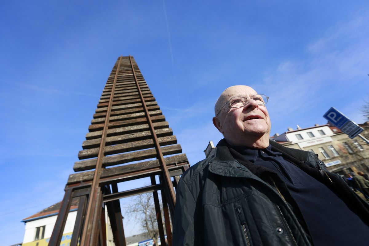 Aleši Veselému za holokaustu zahynulo 42 osob z širšího příbuzenstva. Na snímku je jeho socha Kaddish, momentálně umístěná před Veletržním palácem.