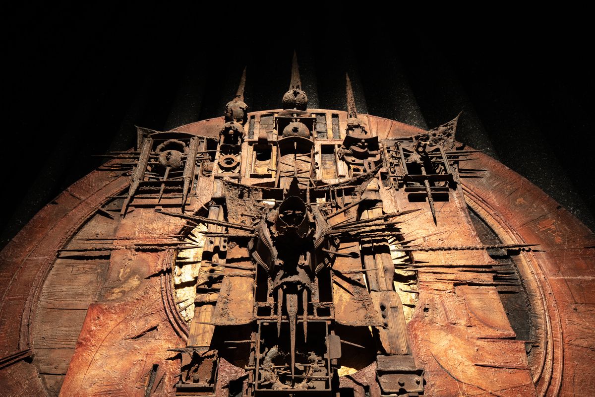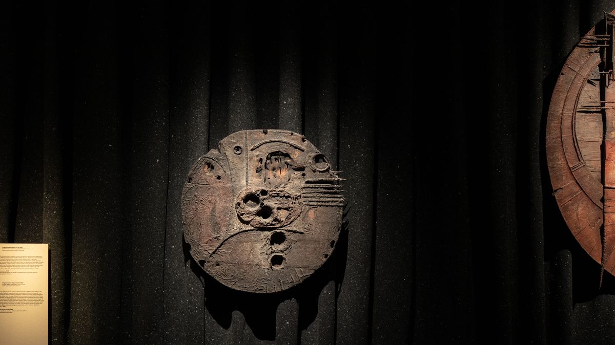 Na fotografii z výstavy je detail Veselého díla Enigma kruhu z roku 1965.