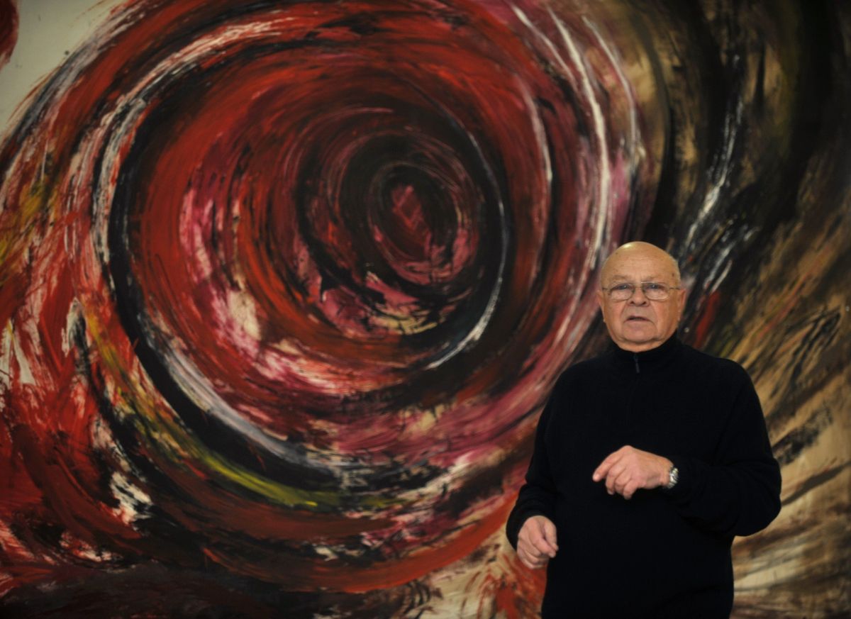 Aleš Veselý je znám hlavně jako sochař, celý život ale maloval. Na fotografii z roku 2011 stojí před jedním ze svých obrazů.