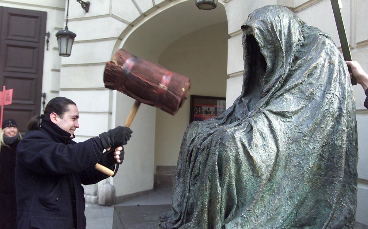 Studenti a pedagogové Akademie výtvarných umění v roce 2003 uspořádali happening proti sochám ve veřejném prostoru. Chtěli odstranit i tu před Stavovským divadlem.
