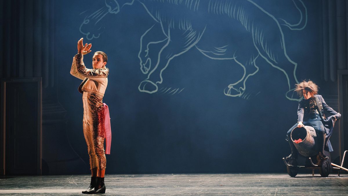 Hrdina rovněž zachrání umírající černou labuť, již tančí bývalá a dlouholetá první sólistka Baletu Národního divadla Nikola Márová. Živá kresba soudní zapisovatelky Galiny Miklínové promítaná na pozadí jeviště doprovází například tango s býkem.