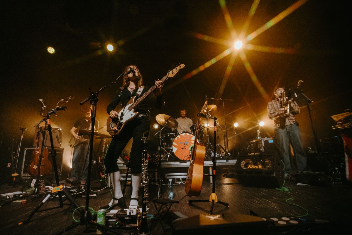 Hráč na dechové nástroje Lewis Evans často v průběhu písně mění altsaxofon za příčnou flétnu nebo basklarinet. Spoustu instrumentálních meziher hraje unisono s vystudovanou houslistkou Georgií Ellery, známou z dua Jockstrap, jež se ale v Roxy tentokrát většinu večera doprovází na mandolínu. Klavíristka s klasickou průpravou May Kershaw v jednu chvíli nasadí akordeon, bubeník Charlie Wayne zase v kompozicích Mary nebo Two Horses bere do ruky banjo.