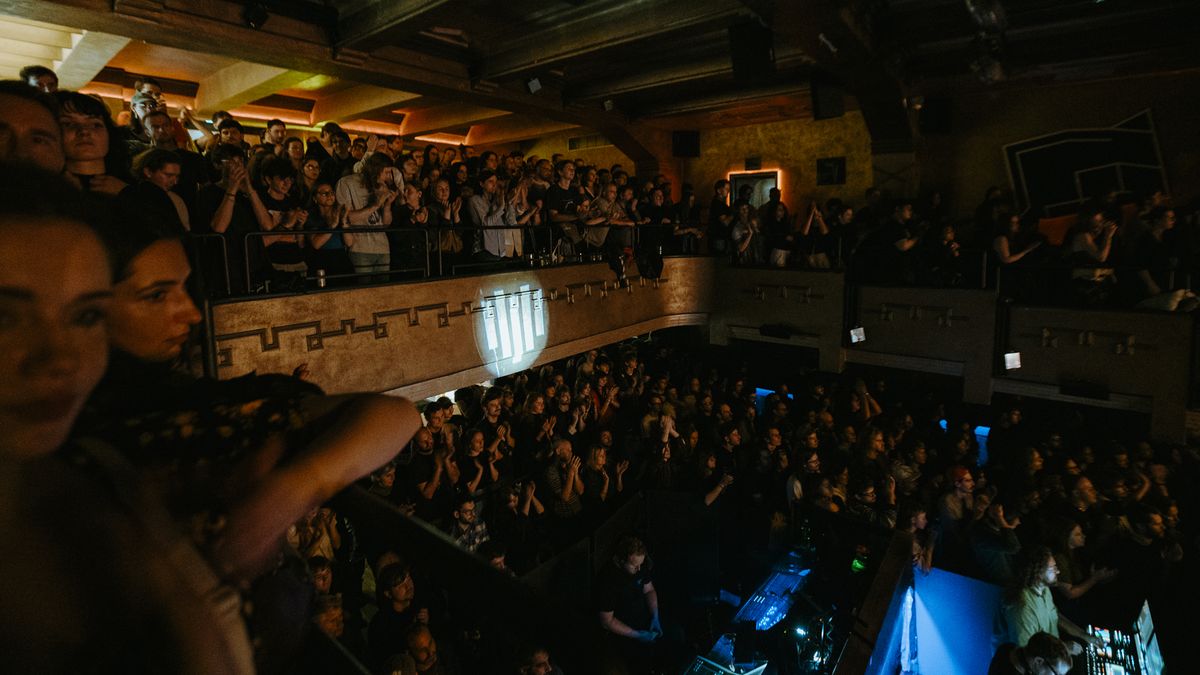 May Kershaw má přes klávesy celý večer pověšenou palestinskou vlajku a ke konci vybízí dav ke krátkému skandování hesla na podporu lidí v Pásmu Gazy. Sbližování s posluchači pokračuje po koncertě nahoře v kavárně NoD, kde na afterparty pouští desky saxofonista Lewis Evans.