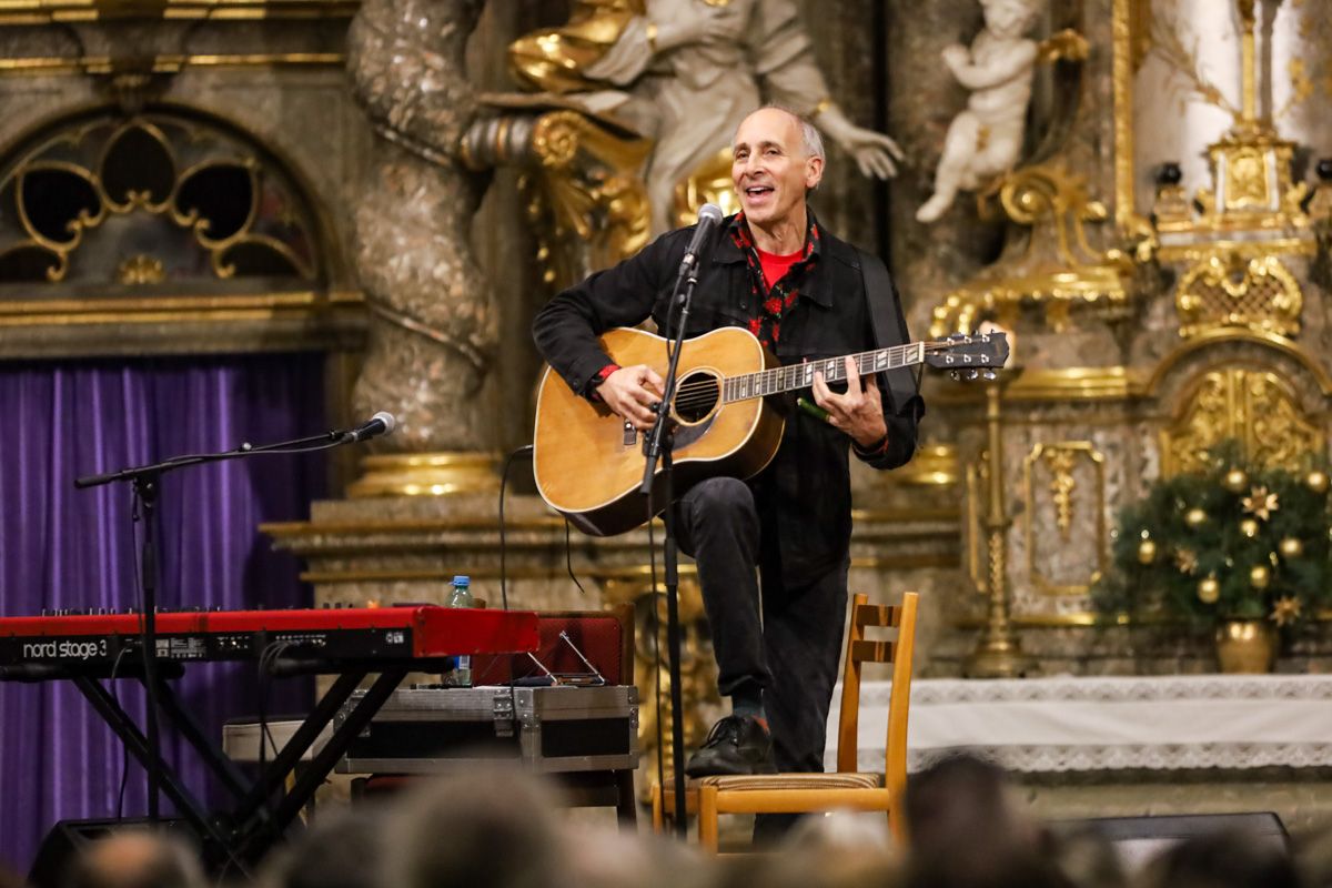 Elijah Wald minulý víkend při vystoupení v šumperském Klášterním kostele Zvěstování Panny Marie. „Jsem ateista a žid. Tady fakt nemám co pohledávat,“ rozesmál několik stovek lidí v publiku.