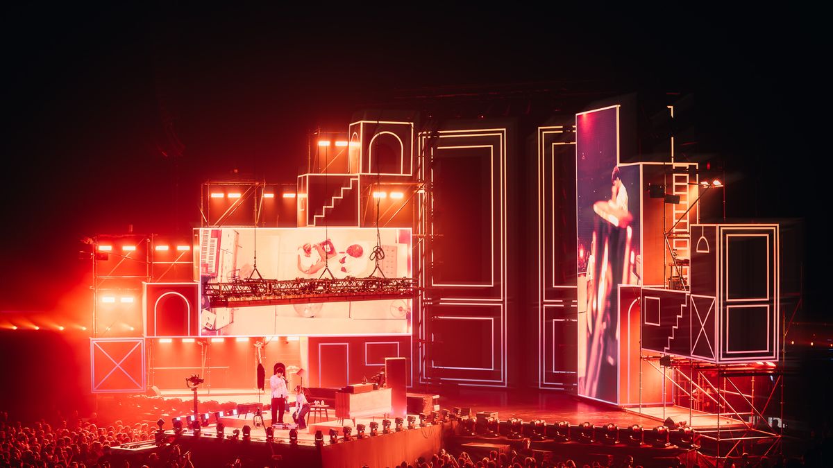 Když ale v O2 areně ukáže Calin svou baladickou polohu, nadšená atmosféra na chvíli pohasne. Sídliště na projekčních panelech střídají kulisy interiéru, v nichž se spolu se zpěvákem objevuje a zase mizí tanečnice jako symbol všech zpackaných vztahů. „Místa přišly o barvy, město přišlo o nás / Její hlas lítá jak vítr, píše tu po stěnách,“ zpívá ve skladbě Mitsubishi. Hořké písně naskládané k sobě v jediném bloku znějí trochu genericky, jedna se slévá do druhé.