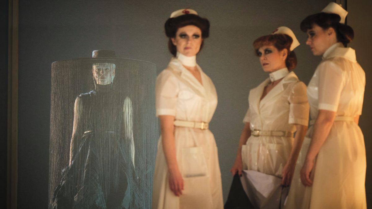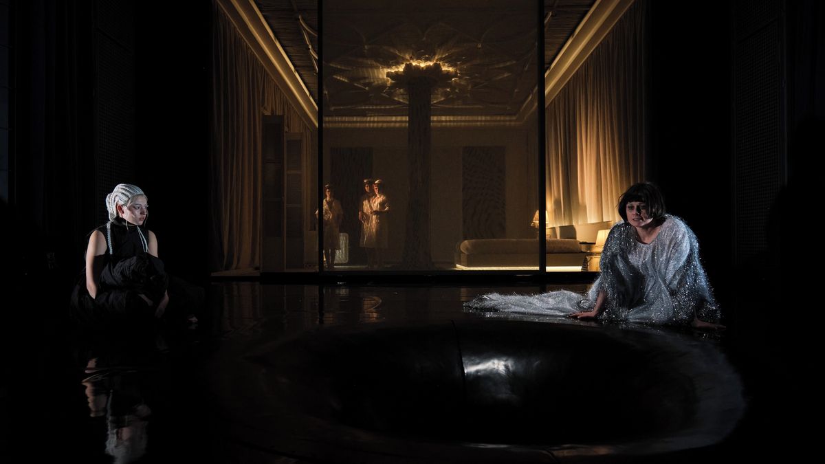 Scénograf Martin Chocholoušek vytvořil interiér s trojrozměrnou rozetou na stropě a velkým zrcadlem. Důležitým motivem inscenace je také zatmění, tedy okamžik, kdy se světlo na chvíli vytrácí, běžný řád věcí se rozpadá a naplno vystupují potlačované síly.
