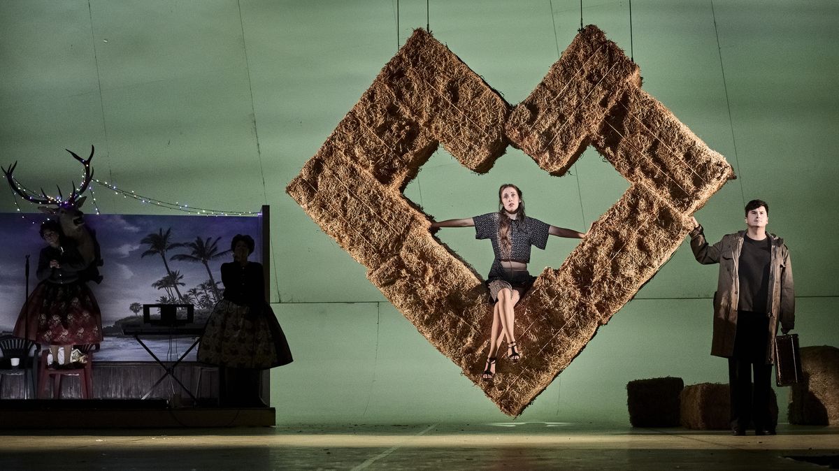Biblický ráz inscenace evokuje pojízdná dvourozměrná dekorace připomínající část papírových jesliček, která spolu s živými obrazy herců ve strnulých polohách vytváří zdání bizarně pokřiveného Betléma.