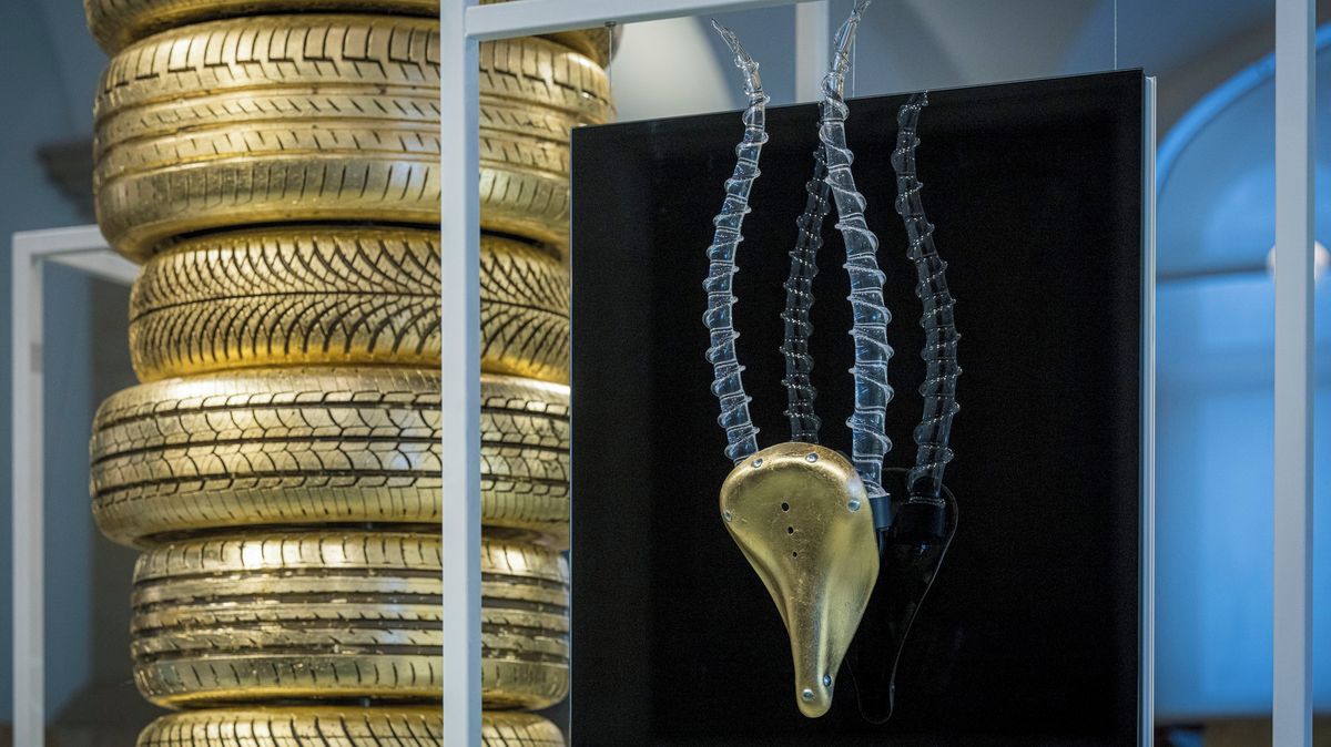 Náhodou není ani to, že objekt má místo řídítek skleněné parohy. Podle Lukáše Houdka je to pro ně atraktivní téma. „Rádi bychom udělali i nějakou kolekci,“ podotýká. Na výstavě jsou k vidění také antilopí skleněné rohy, které trčí z ikonického sedla kola Favorit.