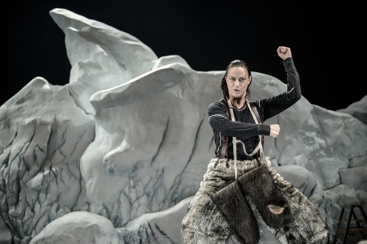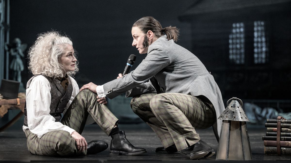 Při dlouhých vyprávěných pasážích se v sále rozsvítí a herci oslovují přímo publikum. Při jednom takovém momentu, zhruba v polovině představení, poprvé promluví monstrum v brilantní interpretaci Petra Vančury. Ten po většinu večera sleduje dění z hlediště mezi diváky a na jeviště vstupuje až ve chvíli, kdy má přednést několikaminutový monolog.