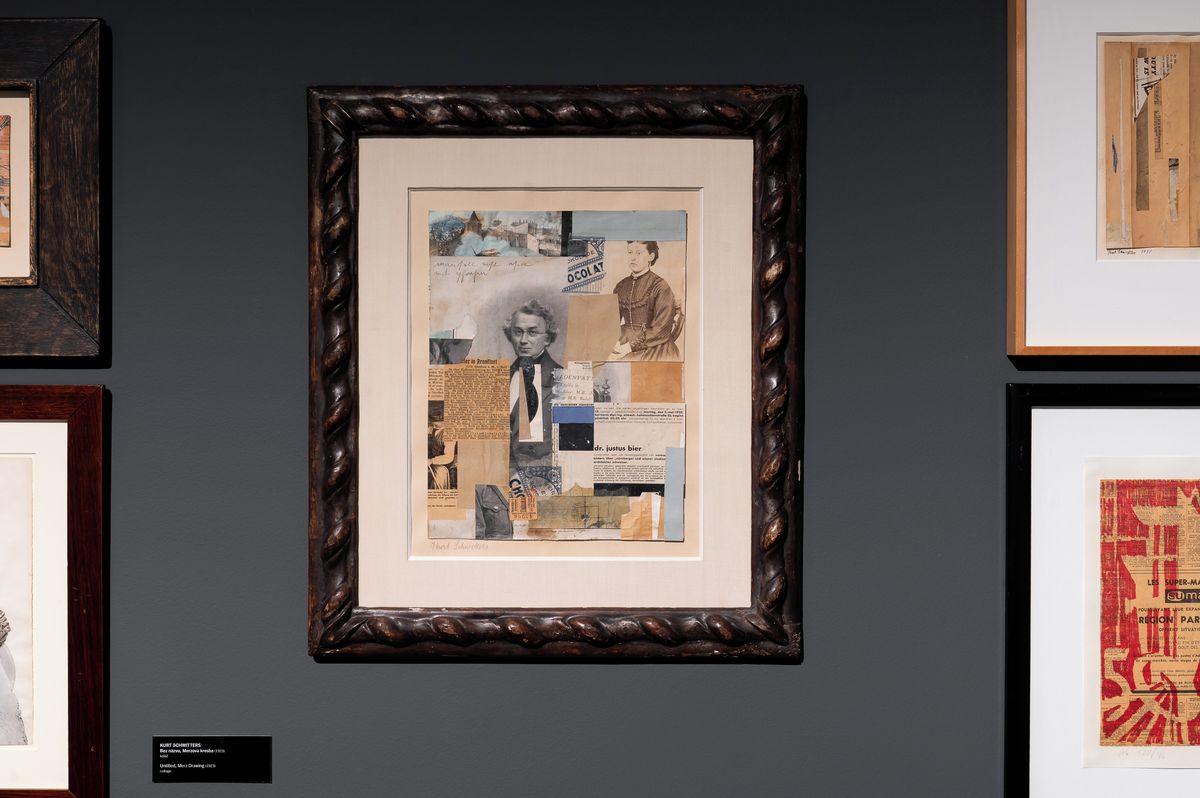 Na fotografii z výstavy je dílo Kurta Schwitterse nazvané Pozor na prázdná slova z roku 1930.