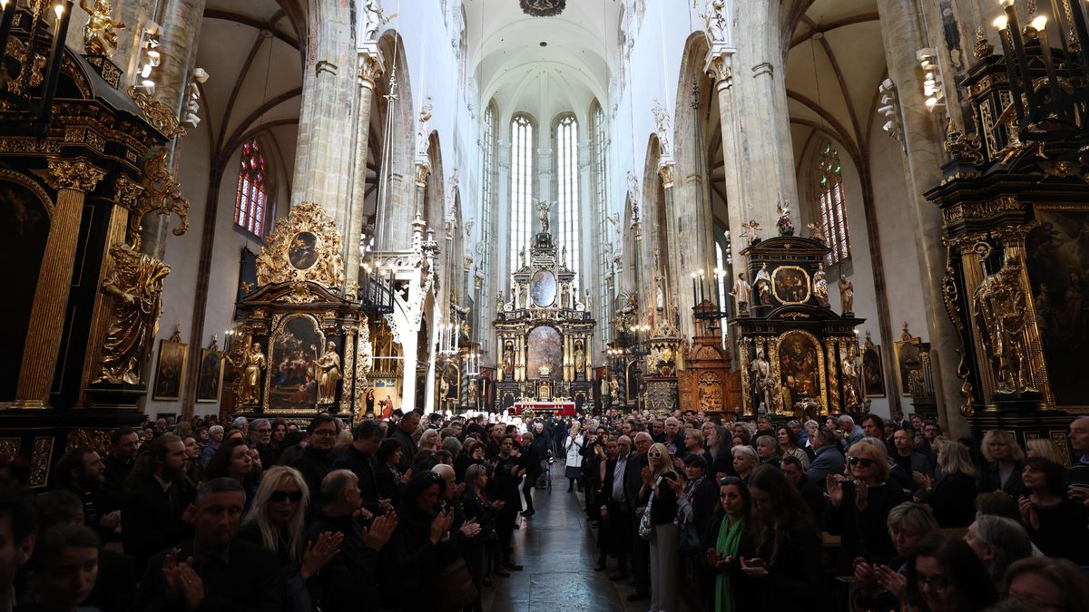 Umělci, rodina i veřejnost se v úterý odpoledne rozloučili s Janem Potměšilem při mši svaté v pražském chrámu Matky Boží před Týnem. Vedle této pietní akce pozůstalí uspořádali rozloučení také v nedaleké Staroměstské radnici.