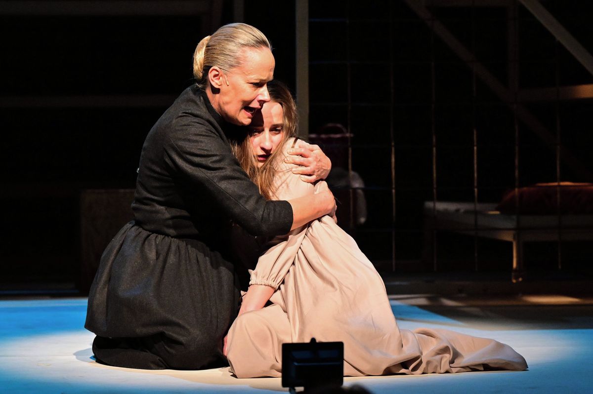 Kostelnička v podání Aleny Antalové (vlevo) se snaží ochránit svou nevlastní dceru Jenůfu hranou Kristýnou Daňhelovou před hanbou a utrpením.
