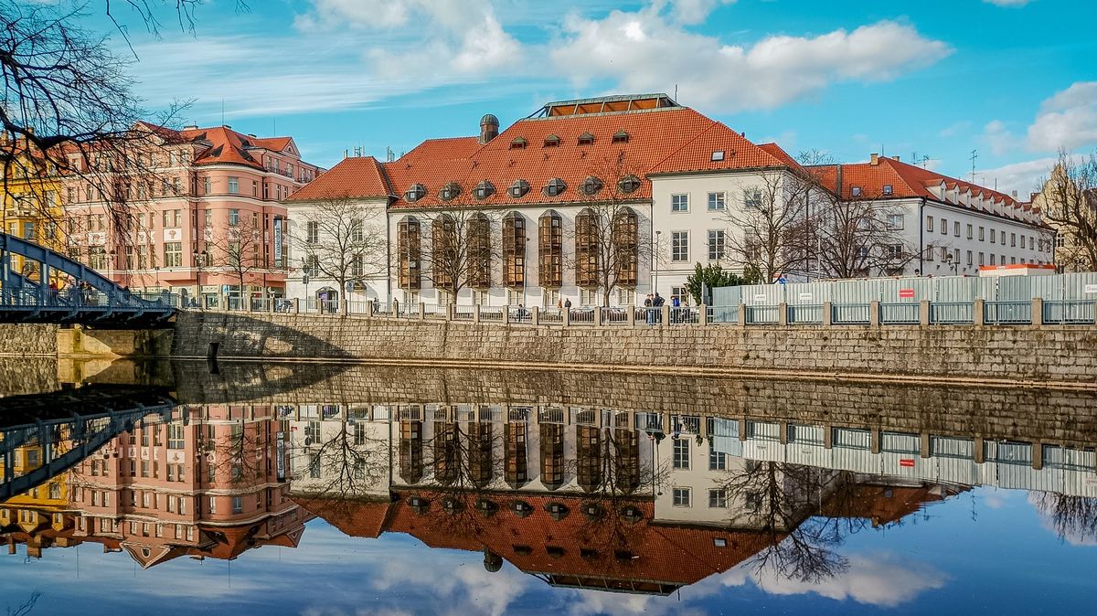 Na fotografii z roku 2024 je budova Jihočeského divadla na nábřeží řeky Malše v Českých Budějovicích.