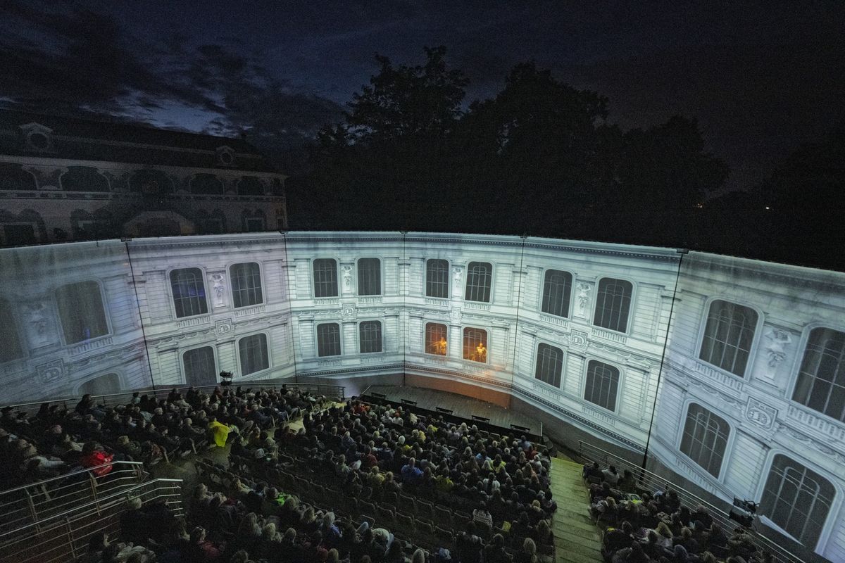 Většinu tržeb Jihočeskému divadlu přináší otáčivé hlediště v Českém Krumlové. Na jeho fotografii z loňska je inscenace Muž dvojhvězdy v režii Petra Formana.