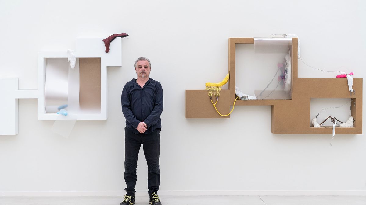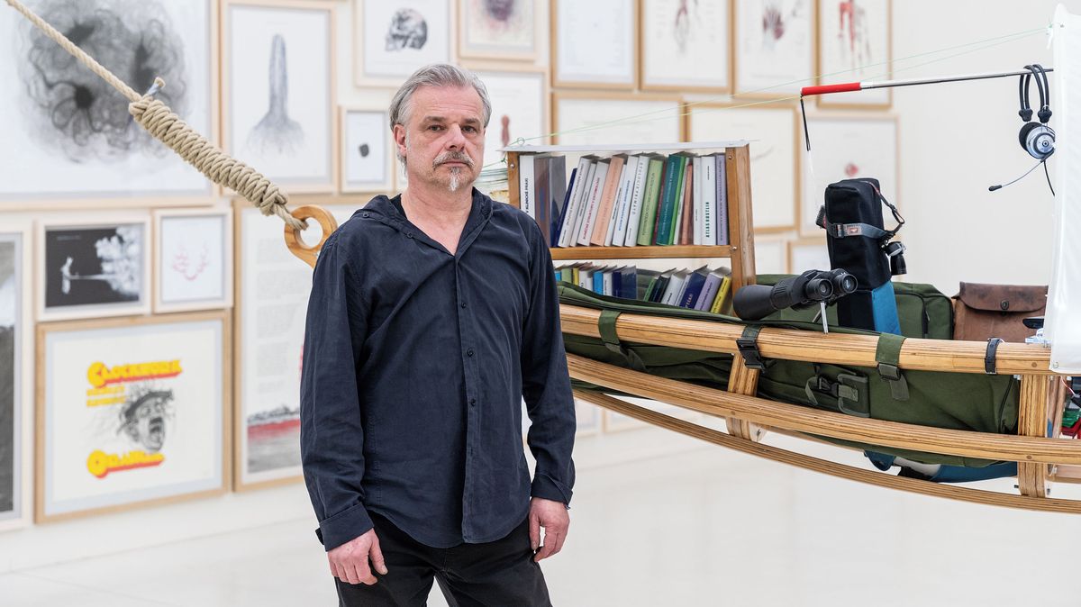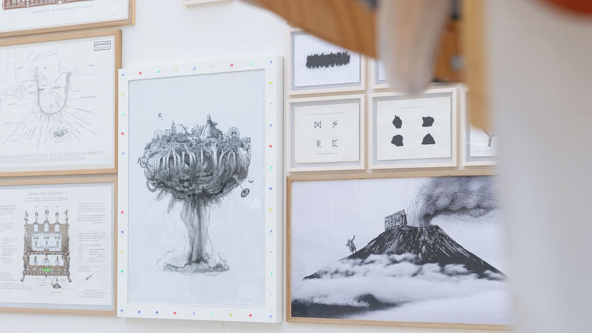 Divákům ukazuje skoro 80 kreseb, které vytvářel od roku 2016. Některé zobrazují architektonické plány, jiné specifické vynálezy, karikatury či anatomické nákresy. „Všechny mají něco společného. Sám autor je chápe jako vědecké aparáty nebo exaktní ilustrace, které můžeme vidět například v knihách Julese Verna,“ přirovnává kurátor Michal Koleček.
