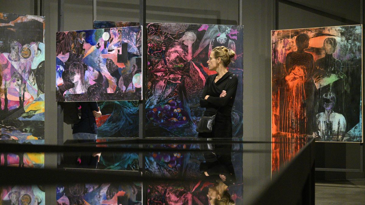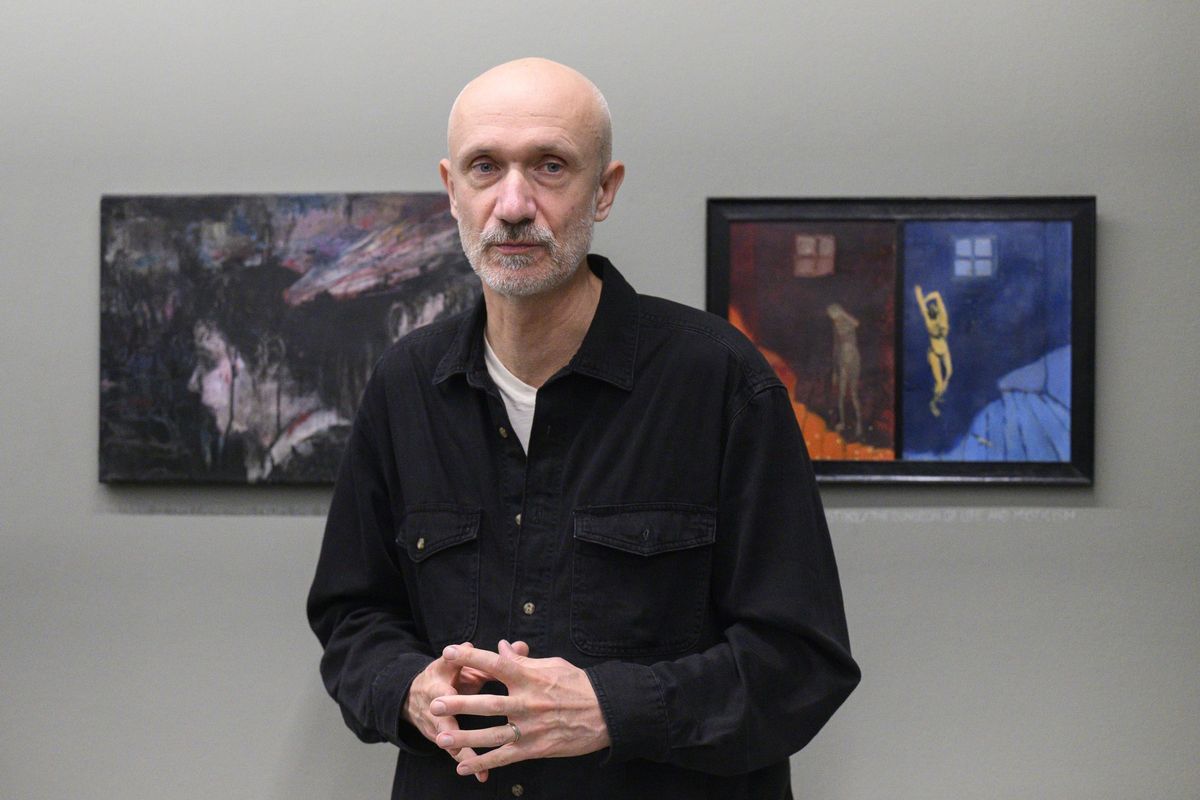 Přehlídce dominují obrazy, některé Bolfovy měří i několik metrů na výšku. K vidění jsou ale také pultíky s Váchalovými tarotovými kartami či Bolfovými aluzemi na ně.