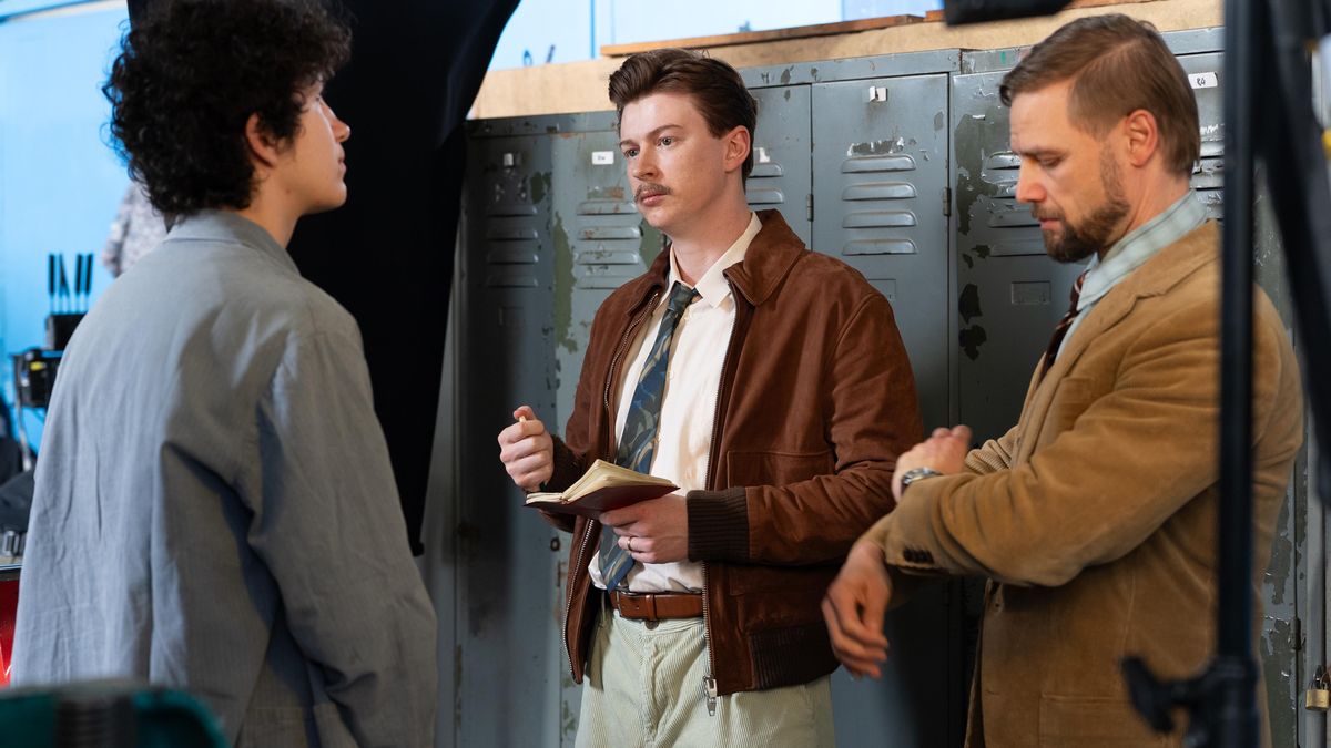 Petr Lněnička hraje Jiřího Markoviče jako poctivého policajta. Vzadu je Maxmilián Kocek coby vrah Jiří Straka.