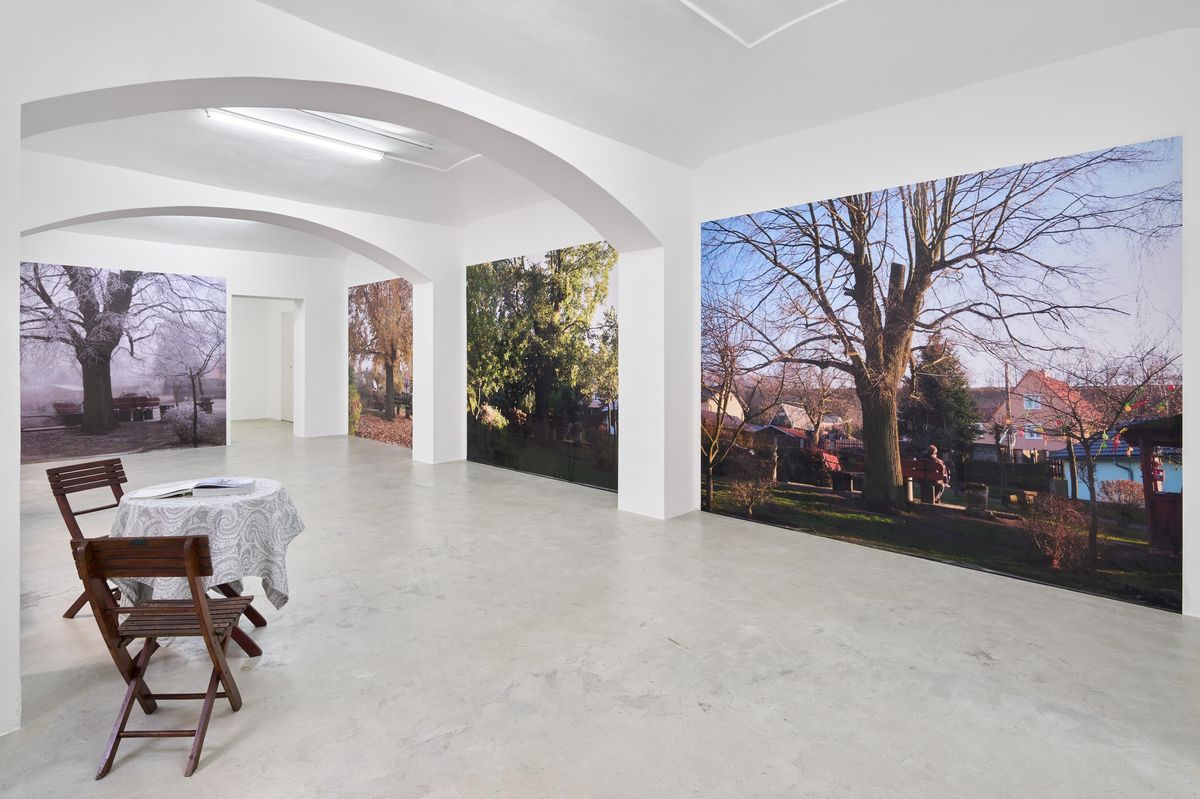 Na čtyřech stěnách galerie jsou od stropu po podlahu nalepené fotografie lípy v proměnách podle ročních období. Na stolku s ubrusem leží objemná kniha s velkým množstvím dalších pohledů na lípu a ve druhém plánu pod jejími větvemi také na lavičky a siluety lidí. Ti si povídají, hrají na kytaru, něco oslavují nebo jen odpočívají. Obyčejné záběry, které dýchají domáckostí. Na jedné fotografii je k přečtení cedule umístěná pod stromem: „Kdo miluje místo, kde žije, pečuje o něj, raduje se z něj a sdílí tuto radost se svými sousedy a hosty, jest šťasten a jeho život je naplněn.“