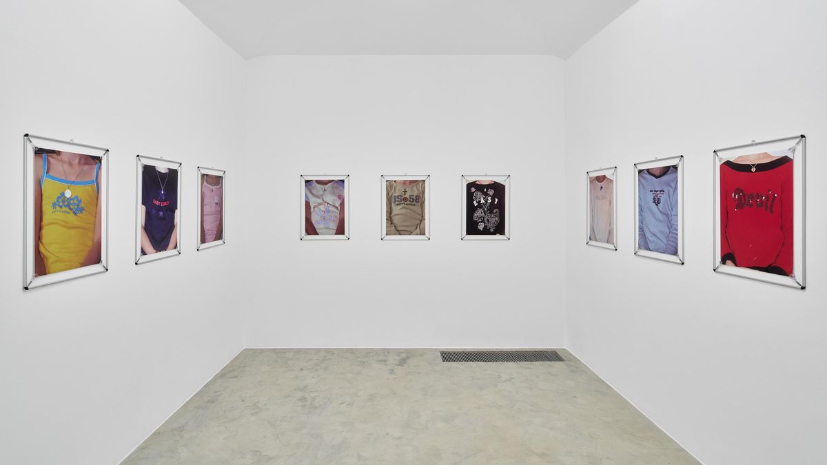 Pražská výstava ukazuje také soubor z roku 2003 nazvaný Trička. Barevné fotografie se dotýkají jednoho z atributů dospívání, kterým je oblékání. Thelenová si u dcery a jejích kamarádek všimla jedné podobnosti: „Všechna děvčata měla tendenci oblékat se do triček s nápisy, aniž by věděla, co znamenají. K tomu se dívky zdobily přívěsky a tím vznikala občas kuriózní spojení,“ říká umělkyně a fotografie ukazují, co má na mysli: „cool“ slogany jako Miss Sixty, Devil, Sugar nebo Army Girl doprovázejí na řetízku zavěšené medailonky s Madonou, křížky, srdíčka nebo třeba kachničky.