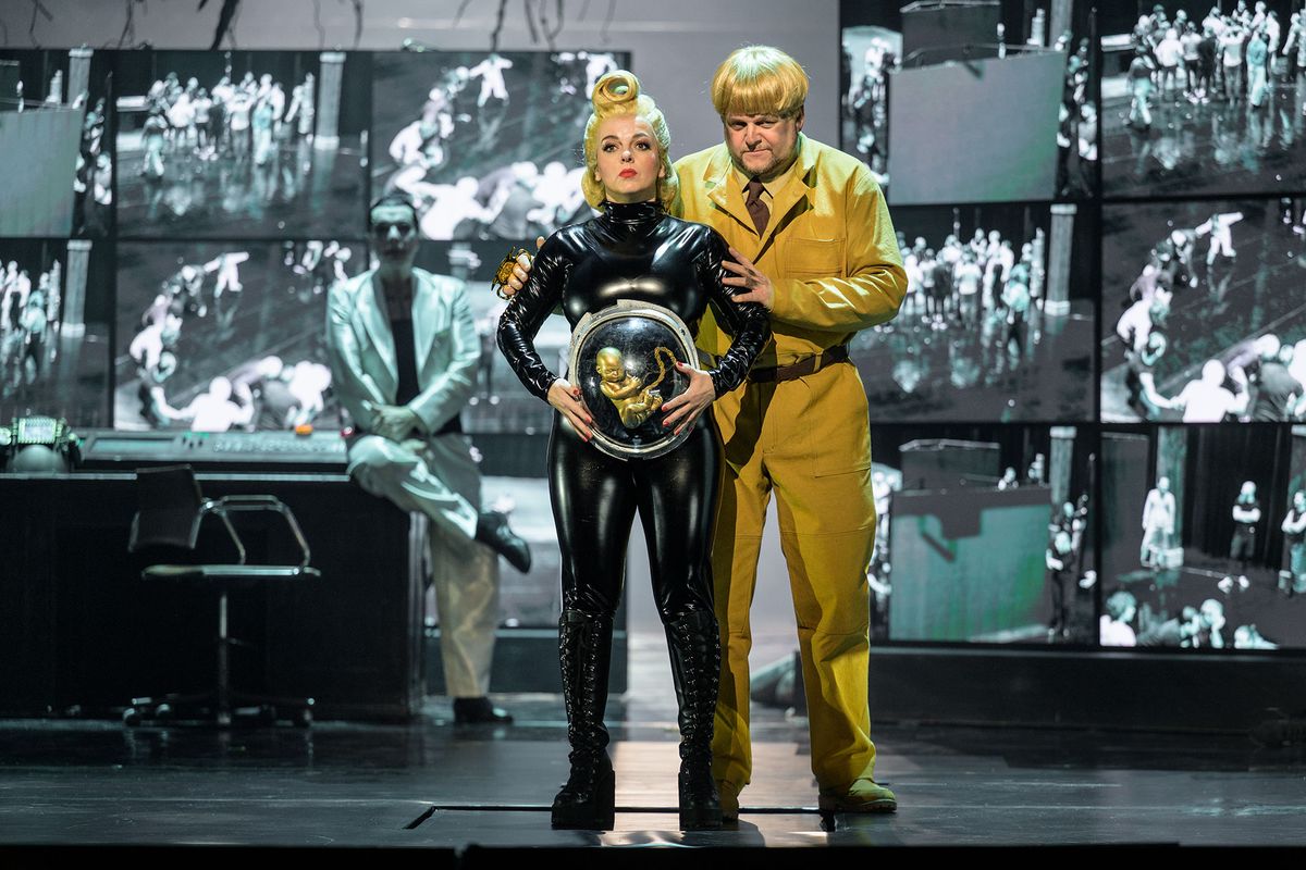 Ani tady režisérka nekončí. Do své vize vkládá témata jako manosféru, označující radikalizaci mladých mužů v online prostředí, či nebezpečnou sílu sociálních sítí. To má znázorňovat podivuhodné řídící středisko plné kamer, kde mocí opilý Alberich úřaduje ve třetí scéně. V jednu chvíli na pódium vyjedou tři těhotné ženy, které jsme před chvílí viděli jako dcery Rýna, a na obrazovkách se ukážou zástupy dalších takových žen. Tady už divákům opravdu nemusí být jasné, co se děje.