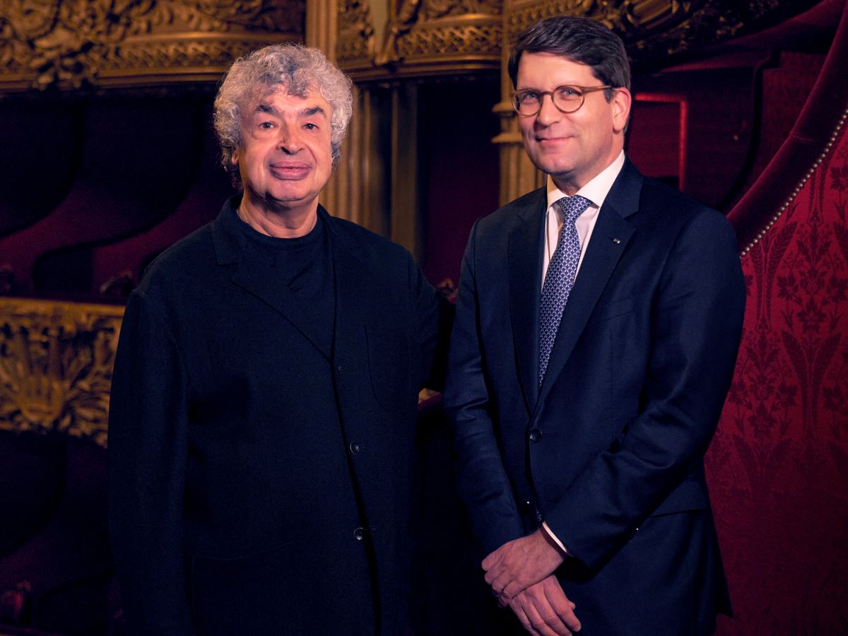 Dirigent Semjon Byčkov a generální ředitel Pařížské národní opery Alexander Neef.