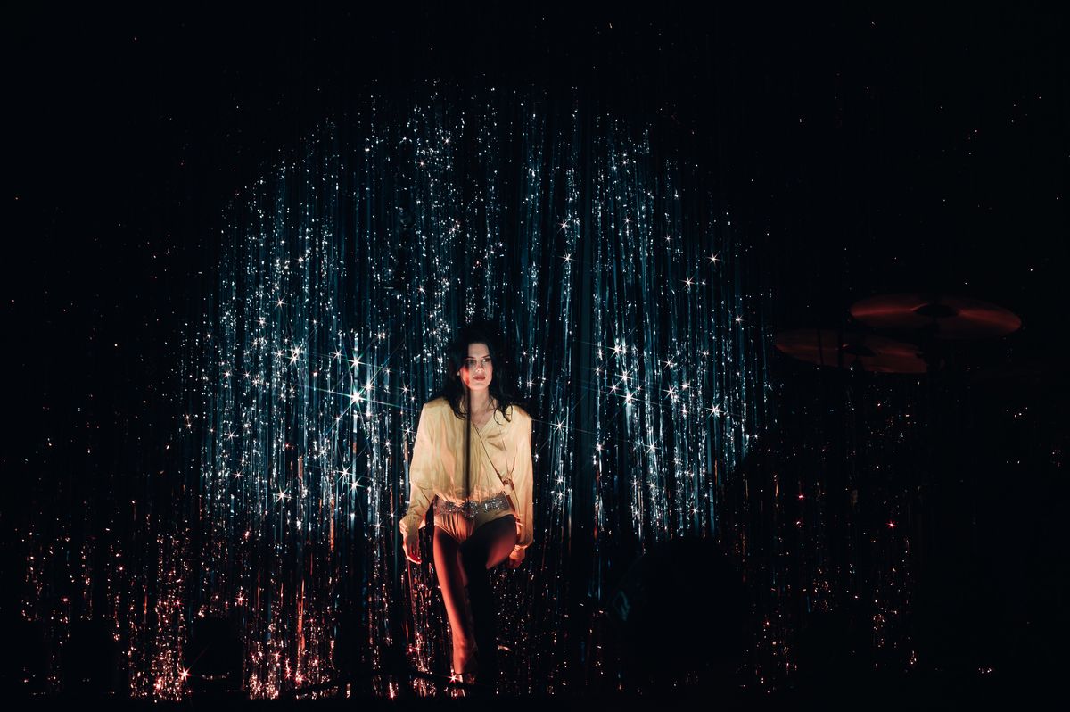 Večer rychle ubíhá, několikaminutové skladby nenatahují virtuózní sóla ani dlouhé proslovy. Na pódiu neustále dochází k drobným změnám. Někdy zpěvačka stojí před zapnutým větrákem, takže jí dramaticky vlají vlasy. Při klavírní baladě o tlacích spojených s mateřstvím Play It Out si naopak sedá na vysokou barovou stoličku.