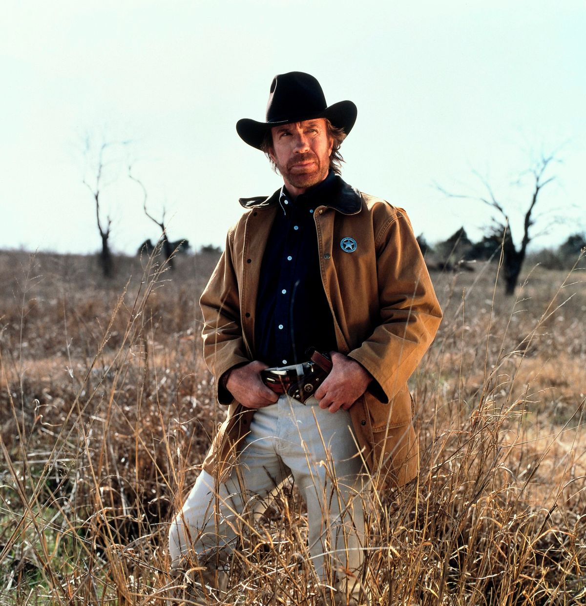 Chuck Norris ve své nejznámější roli člena Texas Rangers Cordella Walkera z televizního seriálu Walker, Texas Ranger.