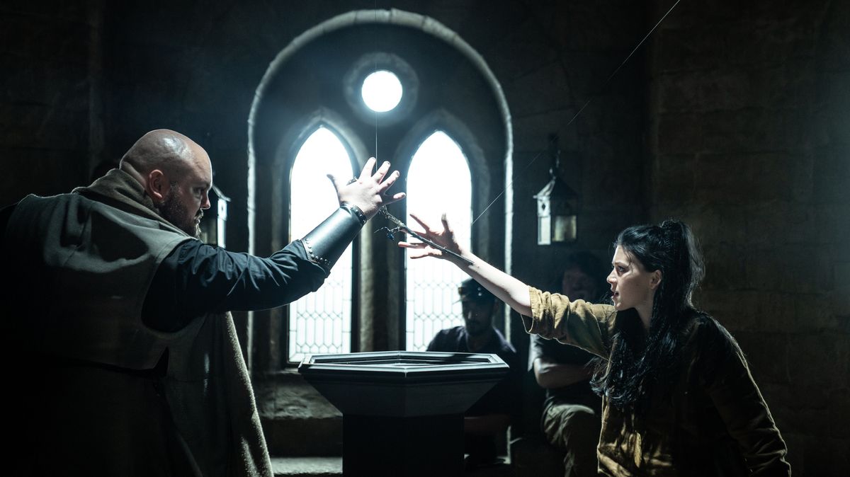 Na fotografii ze Zrození alchymistky jsou Kryštof Koníček jako Duri, Magdalena Müller v roli Ariany a Roman Zach coby alchymista Archivald.