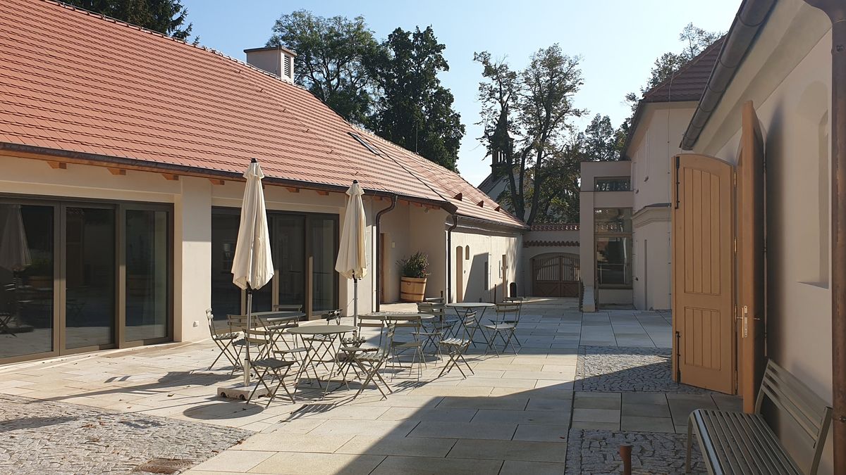 V době, kdy Lobkowiczové začali s rekonstrukcí, dvůr přepažovaly dvě zdi. Při rekonstrukci je architekti odstranili, takže vznikl jednolitý dvůr, na kterém se dá v teplých dnech posedět s kávou.