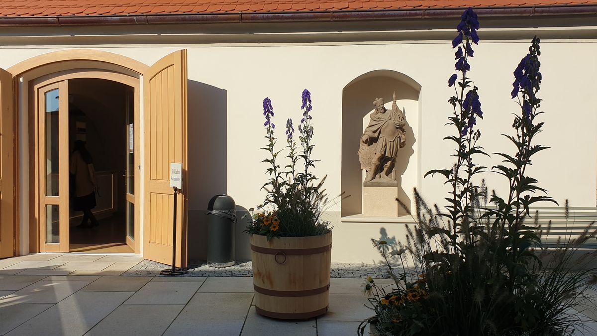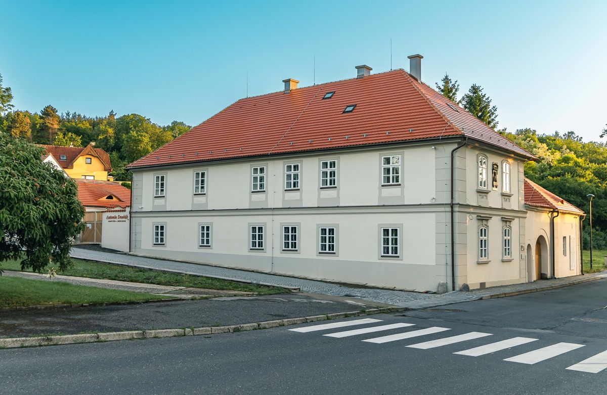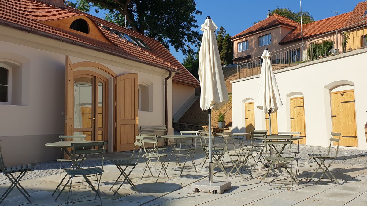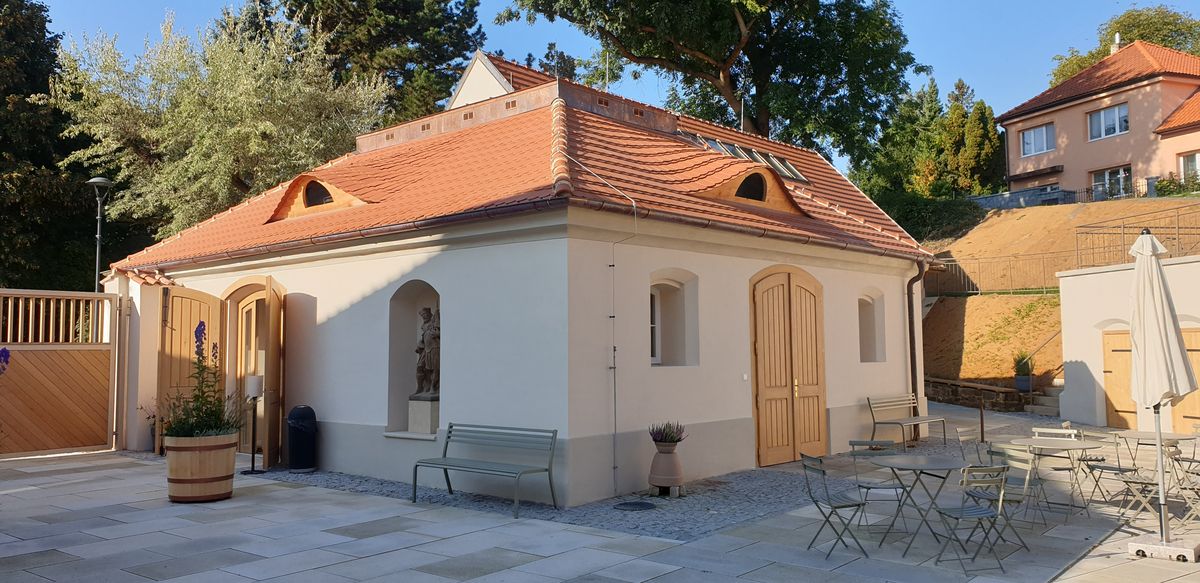 U zdi otočené k zámku stojí další menší budova, která sloužila třeba jako stodola s chlívkem. Po rozšíření je v ní návštěvnické centrum s pokladnou, šatnou, záchody, kavárnou a prodejnou suvenýrů. Venkovní zeď zdobí barokní socha svatého Václava, která kdysi stávala na nedaleké vinici.