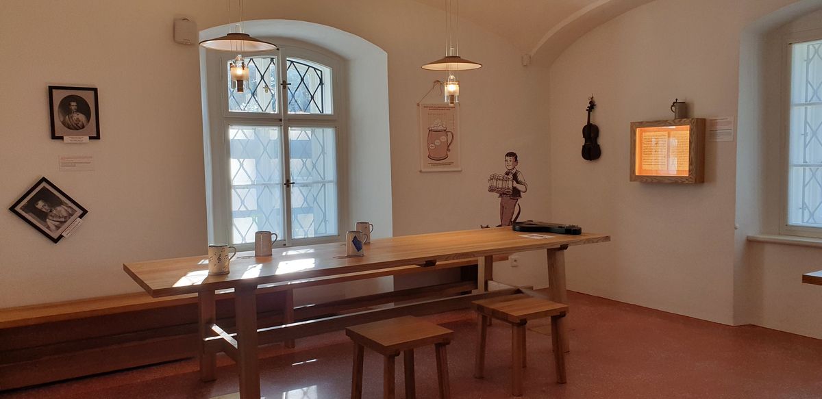 „Ale celou dobu se tu pořád prodávalo pivo. Takže to nemuselo být úplně celé shořelé, spíš asi střecha, předpokládám. Hlavně horní patro bylo poškozené,“ uvažuje kurátorka. I když při rekonstrukci se našel ohořelý trám v přízemí. Traduje se k tomu historka, že Antonínův otec vzal miminko, uložil je za domem do kolébky a šel hasit požár.