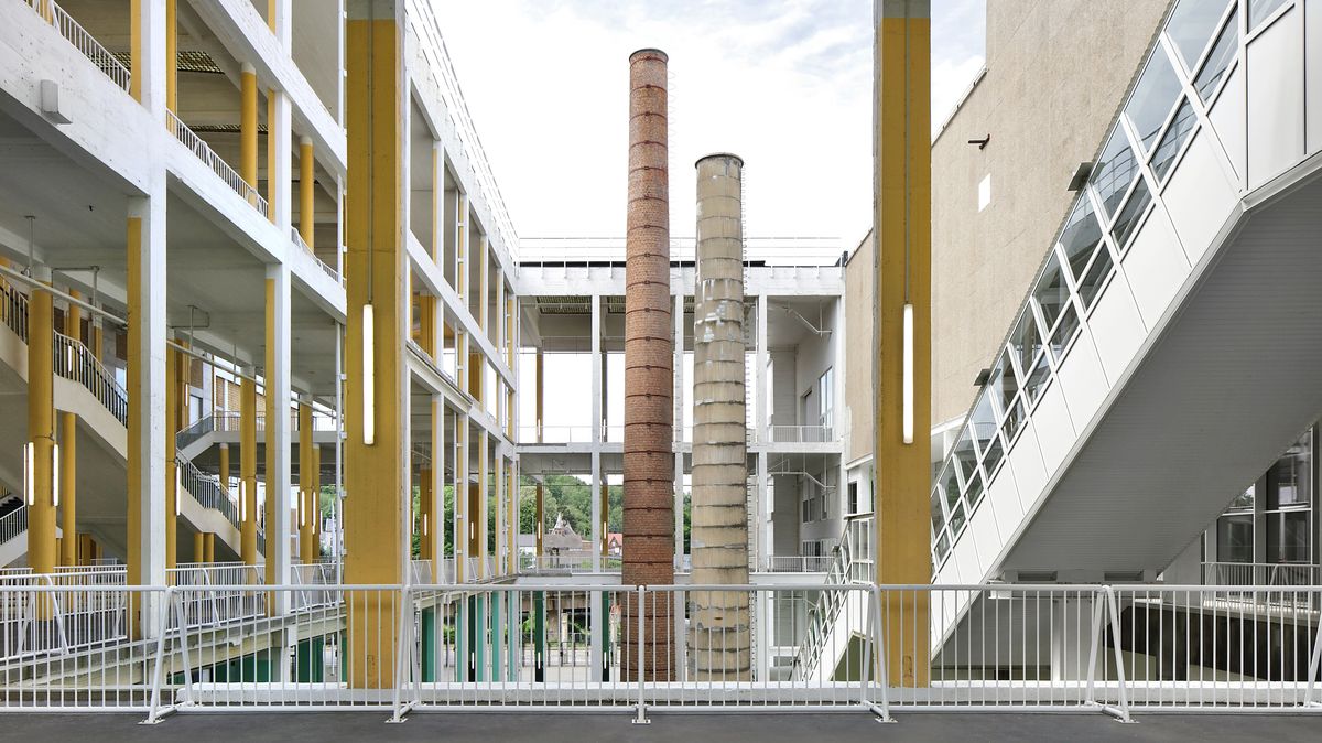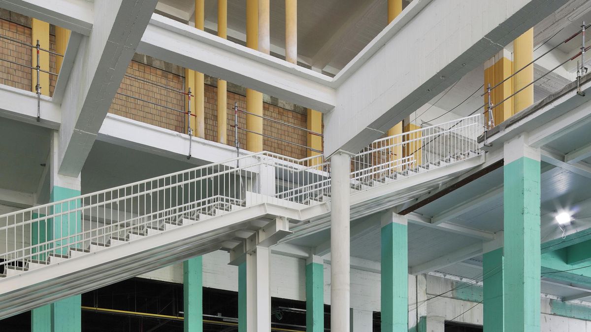 Architekti proto odstranili fasády a z původní haly vytvořili krytý, avšak otevřený venkovní víceúčelový prostor, de facto stavbu s nulovou spotřebou energie. Uprostřed vytvořili prosvětlené atrium osázené zelení nenáročnou na údržbu a ozdobené historickými cihlovými komíny. Zbourané prvky se místo odvozu na skládku proměnily na městský mobiliář.