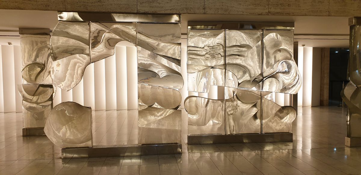 Nedopatřením došlo na uměleckých dílech v budově také ke škodě. V travertinovém předsálí někdejší burzy ze 30. let a později i Sněmovny lidu v přízemí, je umístěná skleněná plastika s názvem Ruce od Stanislava Libenského a Jaroslavy Brychtové.