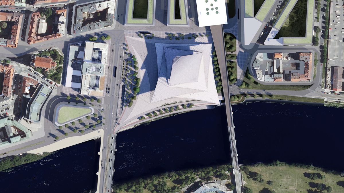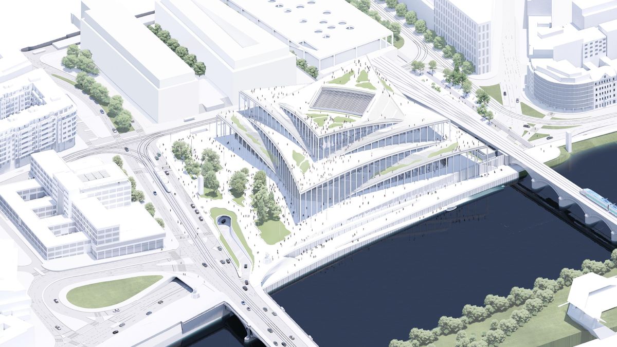 Jinými slovy, jako by „kamenná Vltava“ stékala ze střechy na náměstí. Vše s respektem k požadavkům na pojízdnost i k tomu, že filharmonie bude stát na hranici pražské památkové zóny a ochranného pásma památkové rezervace.