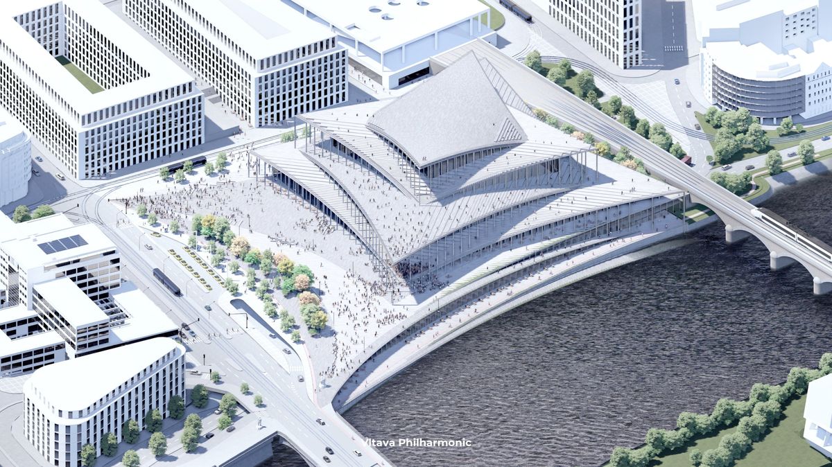 Stejnou cestou se vydali i architekti plánované Vltavské filharmonie v Praze z dánského studia BIG. Přišli s konceptem, že veřejný prostor kolem stavby bude mít na každé ze čtyř stran, a také na střechách, jiný charakter. Všechny části přitom budou inspirované krajinou kolem Vltavy. Odráží to nejen fakt, že filharmonie ponese jméno této řeky a bude stát přímo u ní, ale i důležitost Vltavy jako jednoho z českých symbolů a propojení s hudbou Bedřicha Smetany.