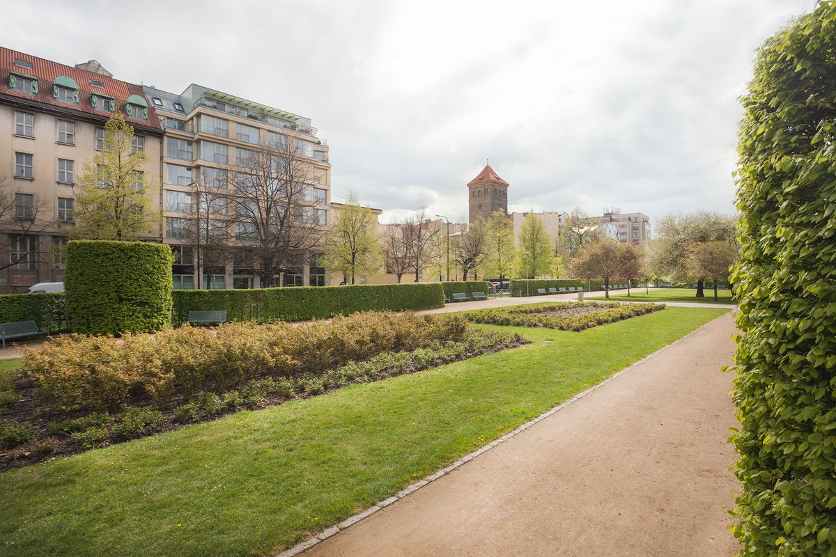 Park na vltavském nábřeží, dokončený roku 2008, přetvořil zanedbanou plochu v moderní městský prostor, rozdělený na vnější nárazníkovou část a vnitřní klidovou plochu s programem. Vnější část je určená i pro venčení psů nebo pohyb na bruslích, v té vnitřní lze najít dětská hřiště, víceúčelové sportoviště, odpočinkové zóny či plochu na petanque.