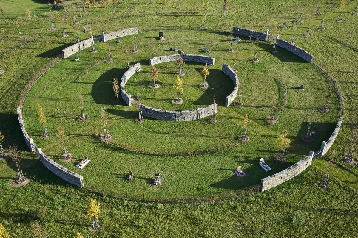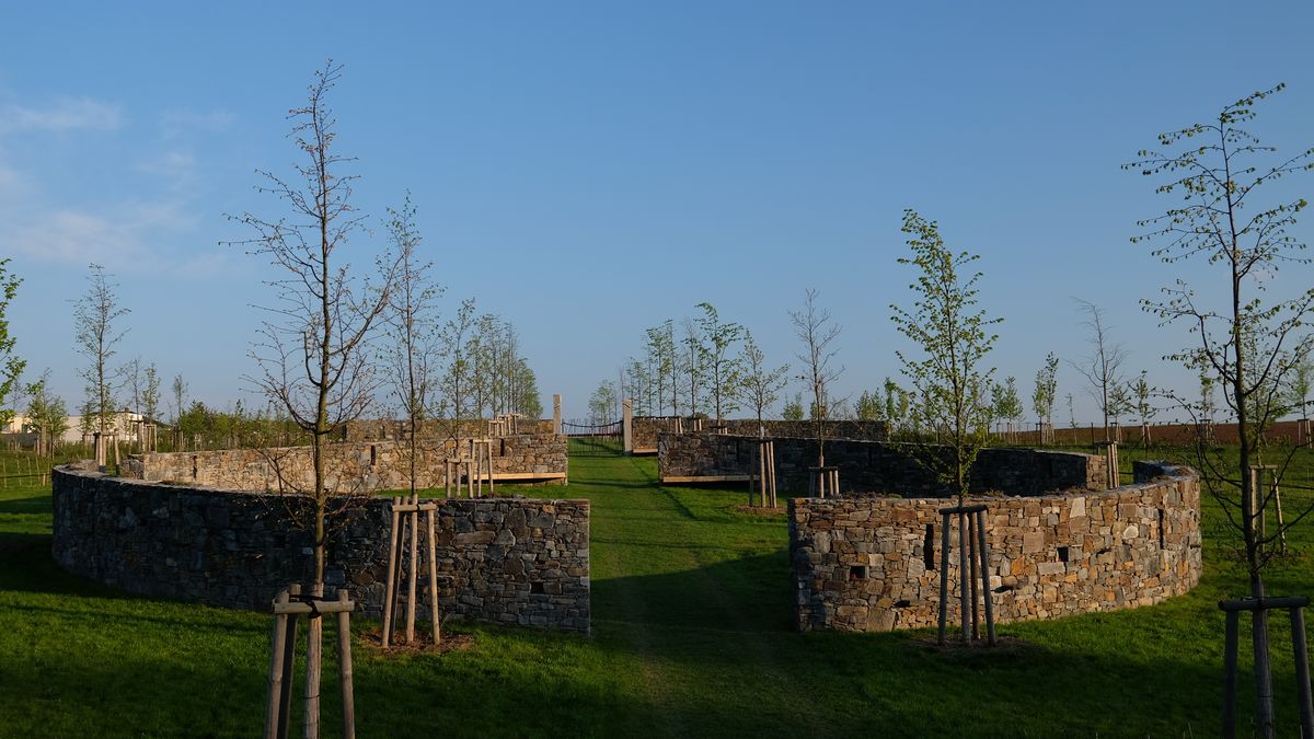 Na kraji Dolních Břežan nedaleko Prahy vytvořili architekti na bývalém rumišti nový typ veřejného prostoru – přírodní hřbitov komponovaný jako krajinářský park. Slouží k pietě i k rozjímání, odkazuje na keltské osídlení v místech i na křesťanské tradice.