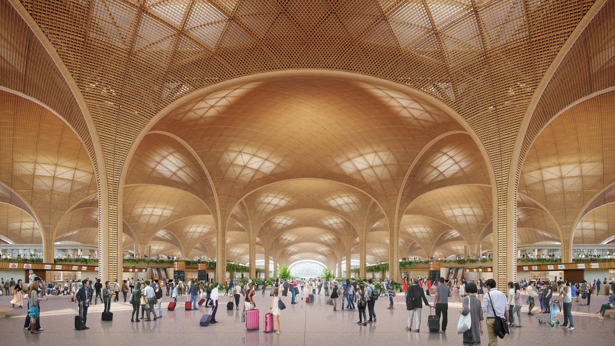 „Ústředním bodem je náměstí s přestupními uzly, oživené bujnou zelení a zalité přirozeným světlem. Lidé se v tomto pulzujícím prostoru shromažďují před cestou nebo před přivítáním návštěvníků,“ popisují svou vizi autoři projektu, architekti z věhlasného britského studia Foster + Partners v čele se sirem Normanem Fosterem.