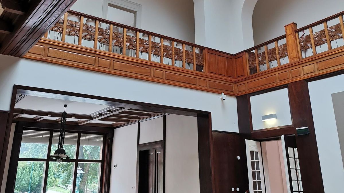 Alfred nechal později interiér částečně upravit, najal si na to vídeňského architekta Rudolfa Baumfelda. „Na přelomu 20. a 30. let byla provedena modernistická přestavba schodišťové haly, která překryla původní secesní vzhled ve spodní části. V horní části vily zůstal vzhled z počátku dvacátého století zachovaný,“ ukazuje mi Vladimír Březina. Dvě rozdílná období lze dobře rozlišit i podle různé barvy dřeva.