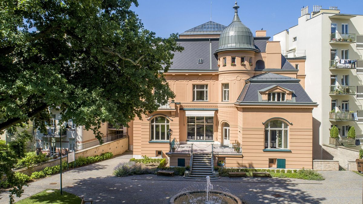 Je to slavná Vila Löw-Beer, v níž v první půlce 20. století bydlela židovská rodina významných podnikatelů. Když projdu volně přístupným průchodem do zahrady, z opačné strany získám úplně jiný dojem. Namísto ploché fasády zarovnané se sousedními činžáky má na této straně typický charakter členitého nóbl rodinného domu, s terasou, balkonem a věžičkou. Stylově si tu podávají ruce secese a historismus.