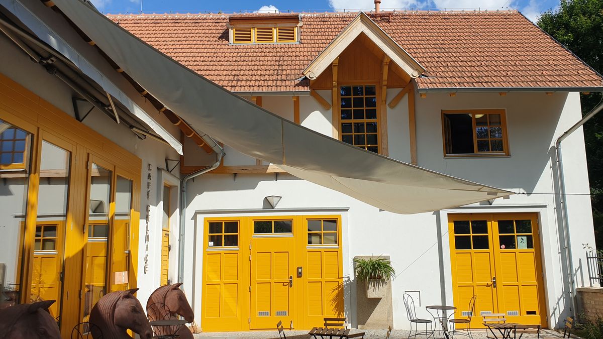 Celek mezi stromy doplňuje bývalý domek zahradníka, takzvaná Celnice, nyní s kavárnou a galerií. Skromná modernistická stavba je stylově zjevně inspirovaná britským hnutím Arts and Crafts.